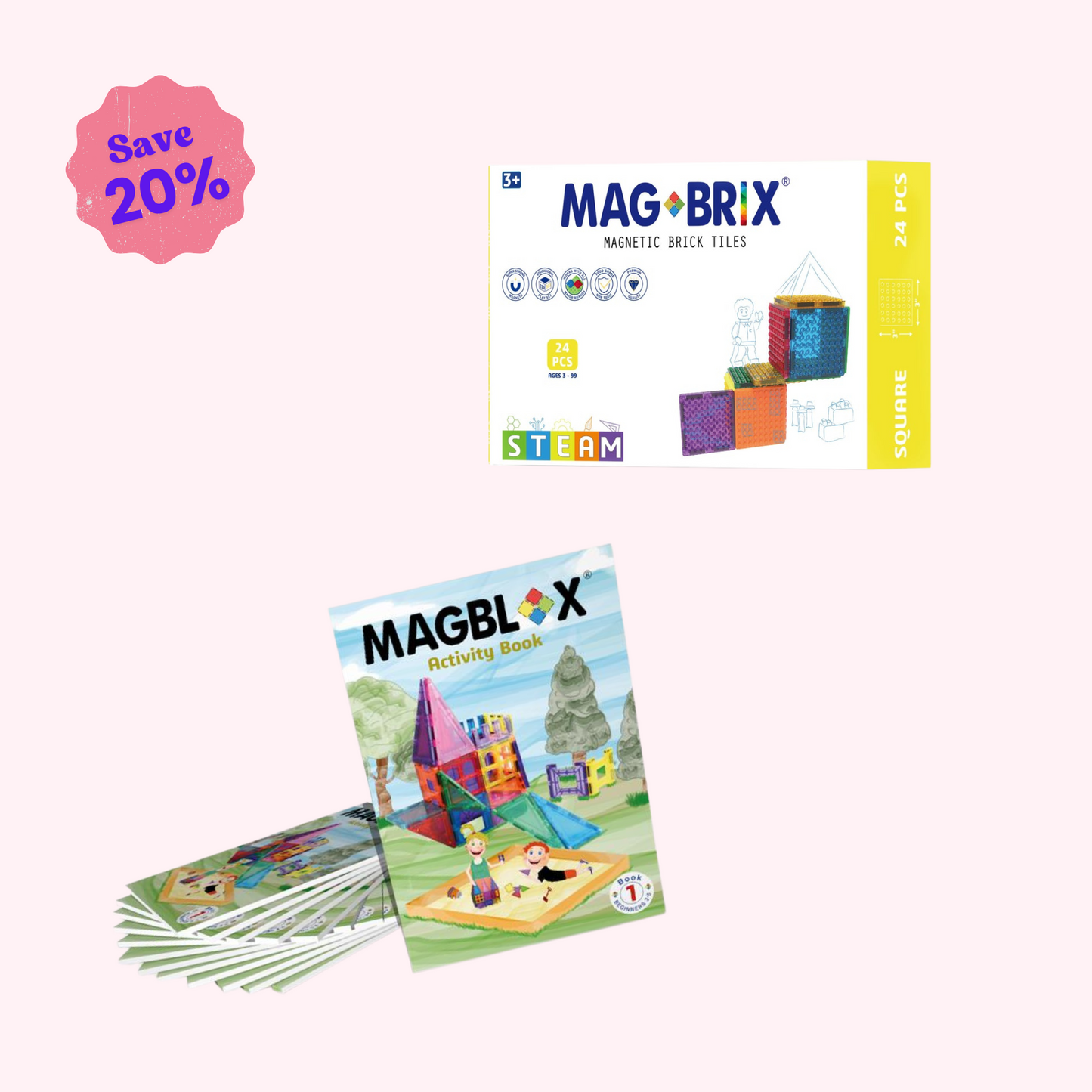Now you can choose to select and increase your collection of magnetic brick tiles by adding individual shapes. The activity book is an excellent companion to your little one's learning journey of shapes and geometrical concepts.