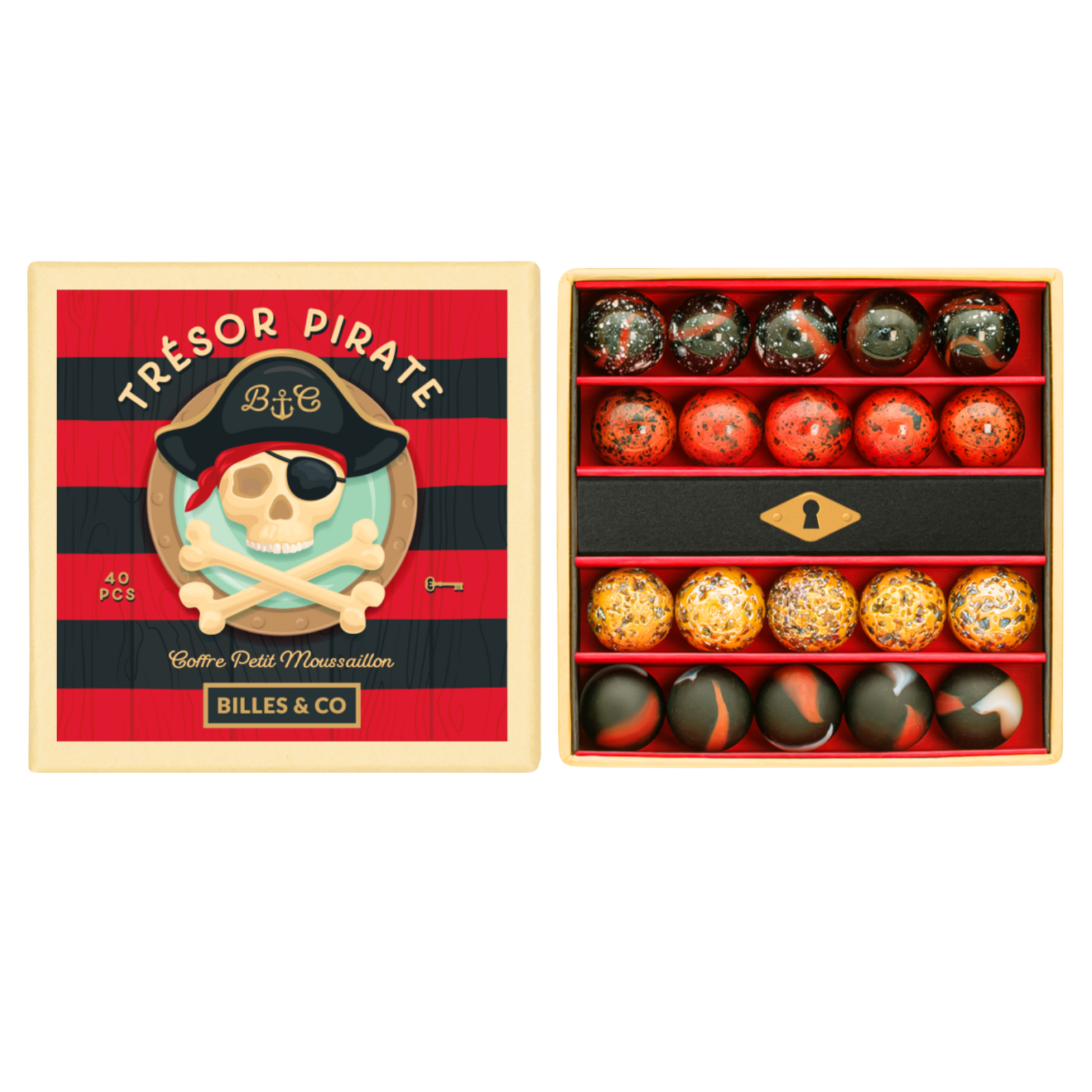 Young sailors won’t be able to get enough of this marble set in red, black and gold, with a real treasure hidden in the box. Loot collected by the buccaneers and privateers of our childhood dreams, to play with and treasure. All aboard!