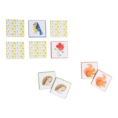 這款記憶遊戲以動物和植物為主題,並配有精美的插圖。它將在玩耍的同時培養您孩子的注意力集中能力。備忘錄裝在一個紙板箱中,包含 72 張卡片,代表動物、花朵、葉子...